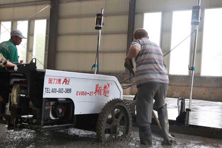 12、激光測控系統自動控制標高:地坪頂面設計標高由激光機電腦自動控制,可保證非常高的地面平整度,并可直接在混凝土層上實現精準找平,地面平整度不受施工模板震動影響,中間不用支模,減少人工材料投入,減少施工程序,加快施工進度。